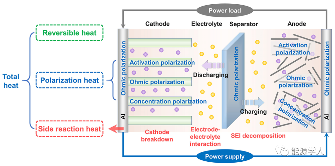 鈉離子電池(SIBs)由于其在資源和成本上的顯著優(yōu)勢,在智能電網(wǎng)、低速電動車、廉價電子商品等市場展現(xiàn)出良好的應用前景。電池的安全性能是決定其能否得到最終應用的重要因素之一。相比于鋰離子電池,鈉離子電池在安全性上存在一定的優(yōu)勢。例如,采用鋁箔作為負極集流體的鈉離子電池可在“零電量”狀態(tài)下進行運輸和儲存,降低了運輸過程中的安全風險。然而,如何構筑高安全的鈉離子電池仍然是一個挑戰(zhàn):鈉離子電池熱失控行為難以避免,體積膨脹、產(chǎn)氣、起火等事故仍會發(fā)生。鈉離子電池熱失控的根本原因在于電池內部不可控的鏈式反應產(chǎn)生大量的熱,造成溫度急劇升高,因此深入理解電池內部的熱效應對電池的安全性具有重要意義。
